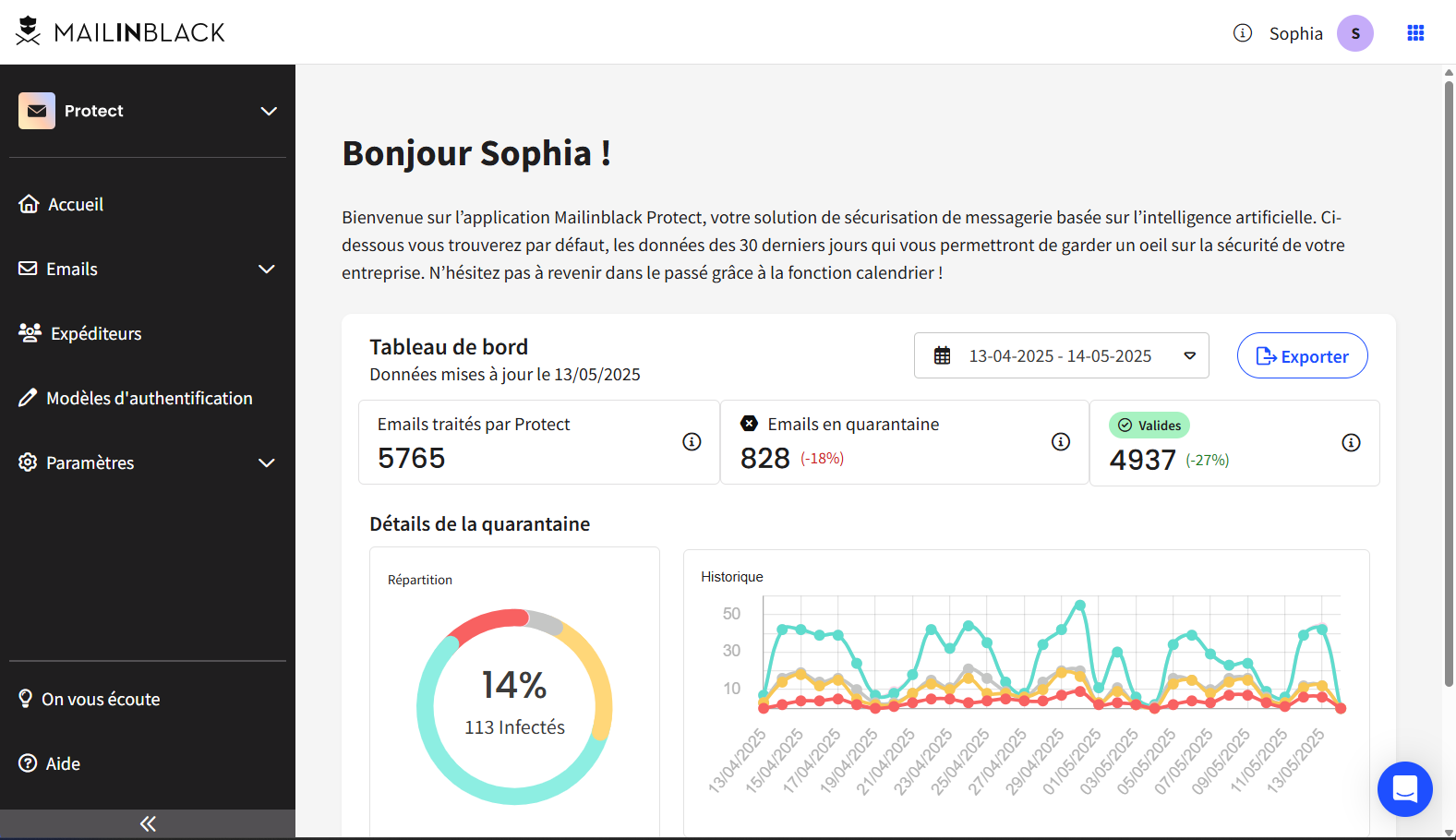 Les tentatives de phishing sont automatiquement détectées et bloquées avant d’atteindre votre boîte de réception.